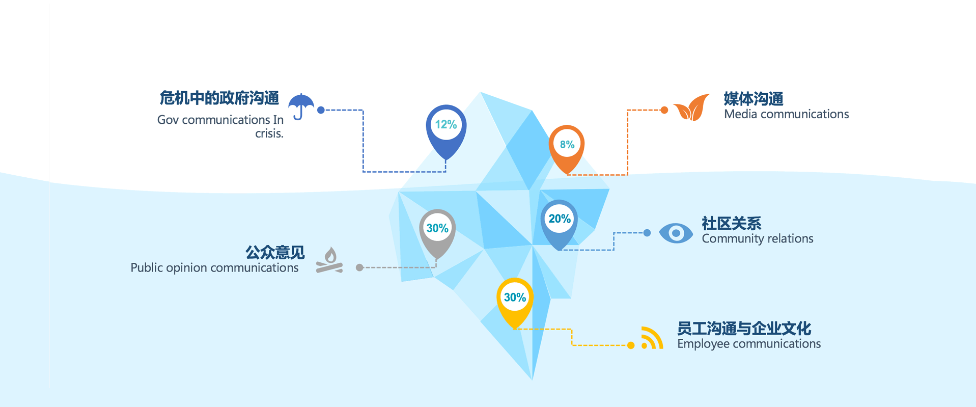 品牌声誉传播 企业品牌声誉是使公众认知的心理转变过程,是企业行为取得社会认可,从而取得资源、机会和支持,进而完成价值创造的能力的总和。良好的声誉是企业所拥有的独特资源,它能在企业经营的各个方面提升企业的竞争力。随着我国经济市场化程度的不断提高,买方市场的出现,市场竞争越来越激烈,产品同质性越来越大,产品本身之外的差异变得越来越重要,企业声誉这种独特资源的作用必然进一步凸显出来;另一方面,随着我国市场经济体制的逐渐完善,市场秩序进一步规范,声誉对企业发展乃至生存的意义越来越重要。 企业的品牌声誉来源于跟利益相关方的沟通, 对内包括内部企业文化和企业价值观落地,员工沟通与员工关系 (international communications + employee relation)影响的是企业的雇主品牌形象,; 对外包括公众关系(public relation)、媒体关系(media relation)、政府关系(government relation)、IR (investor relation) 和企业社会责任(CSR)。 在数字化时代的今天,品牌日常的声誉系统化专业化建设和危机中的及时有效地危机应对同样重要, 两者共同形成了品牌声誉。 如果品牌声誉日常积累丰厚,危机中人们跟倾向于相信这是一个个案,是管理漏洞; 反之,如果日常不注重与利益相关方沟通,一旦遇到问题,公众更容易相信谣言,更容易认为这是企业的价值观问题造成的,而价值观问题一旦被质疑,是很难挽救的, 对品牌损害甚至对企业的可持续发展影响很大。 比如权健事件,安然事件等都是现实案例。 品牌美誉度调查与诊断 品牌美誉度管理体系建立 品牌价值观体系搭建与对外传播 集团品牌的声誉传播的内容营销设计
