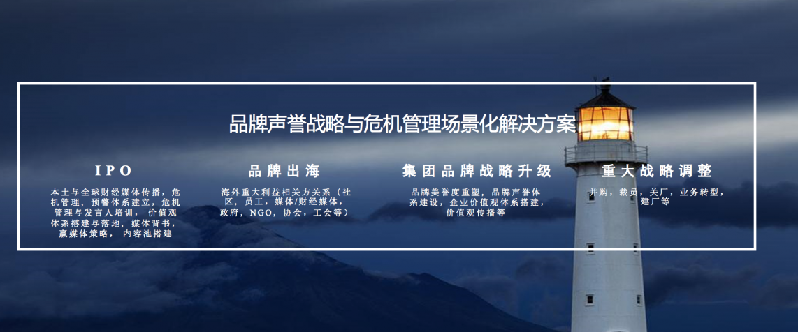 社交媒体时代危机无处不在,企业用几十年甚至上百年投资建立起来的良好品牌声誉可能因为一个危机的不当处理,一位发言人的不当发言而毁于一旦。一见塑造咨询顾问精准深度聚焦在企业传播和危机预防与处理,为中外客户提供事件管理和危机公关方面的专业化服务和支持。我们的本土及北美顾问团队包括曾经在媒体(CCTV焦点访谈/NBC)、4A公司(奥美),战略咨询(德勤美国),B2B(GE), B2C(米其林),有在财富500强企业中担任CMO和品牌/传播总监的高管;也有中国企业在纳斯达克上市负责人,有亚马逊职业经理人等丰富的本土及国际化背景,多元化的背景使我们能够为客户提供多种行业的咨询服务。